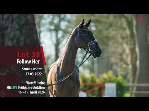 Follow Her ist eine bewegungsstarke Tochter des Follow Him's Schönweide. Ausgestattet mit viel Antritt und hervorragender Bewegungsdynamik präsentiert sich diese Stute in diesem Westfälischen Auktionslot. Ein vielversprechendes Ausbildungspferd für den gehobenen Dressursport. Alle Infos zum Auktionslot hier: https://onlineauction.westfalenpferde.de/de