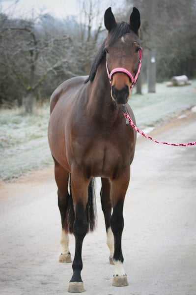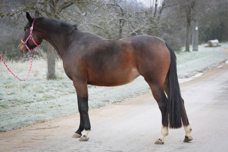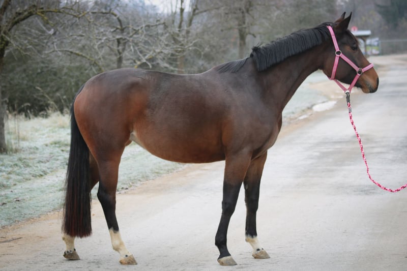 For sale is my 4-year-old, compact and very elegant Oldenburg mare (Fiedertanz x Heraldik xx). She has excellent basic gaits and has been gently backed. Under saddle, she is well-behaved and cooperative, but due to her training level, she is not suitable for beginners. She was raised excellently in an open stable environment, is barefoot, and shows no bad habits. Thanks to her quality and pedigree, she is ideal for sport and also of interest for breeding. Pedigree: Sire: Fiedertanz – modern sport stallion and recognized sire Dam line: through Heraldik xx – known for producing high-performance, successful offspring Key data: - Oldenburg mare, 4 years old - Compact and very stylish - Excellent basic gaits - Gently backed - Well-behaved under saddle - Outstanding upbringing in an open stable - Barefoot - No bad habits - Not suitable for beginners (training level) - Sporty and breeding-worthy (Fiedertanz x Heraldik xx)