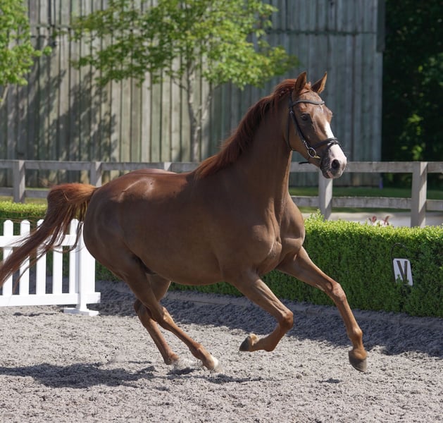 Rumira Vee ist eine erstaunliche Gelegenheit, eine direkte Vivaldi-Jungstute aus der Vollschwester von Rubin Royal zu kaufen, der seit einigen Jahren der nummer 1 Zuchthengst im Dressursport ist! Mit ihrem außergewöhnlichen Pedigree haben wir uns auf die Zucht konzentriert und haben super Nachkommen, die wir behalten möchten. Sie hat ein sehr umgängliches Wesen im Umgang und liebt Menschen, ihr Charakter ist sehr freundlich, sodass sie sich leicht in die Herde und den Alltag einfügt. Sie könnte sowohl für einen größeren als auch für einen kleineren Betrieb geeignet sein, ist aber auch einfach genug für jemanden mit weniger Erfahrung in der Zucht, um mit dieser sehr spannenden Zuchtstute zu lernen. Darüber hinaus, obwohl sie nie angeritten wurde, könnte sie nach dem Absetzen des diesjährigen Fohlens leicht unter dem Sattel gestartet werden oder steht jetzt zur Wiederbedeckung auf Kosten des Käufers für Tierarzt- und Samen-Kosten zur Verfügung und kann nach dem Absetzen des diesjährigen Fohlens abgegeben werden, um behalten zu werden.