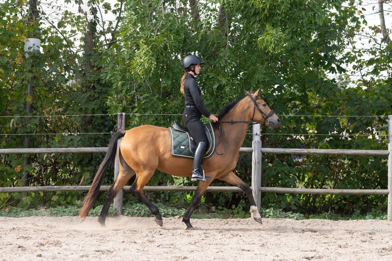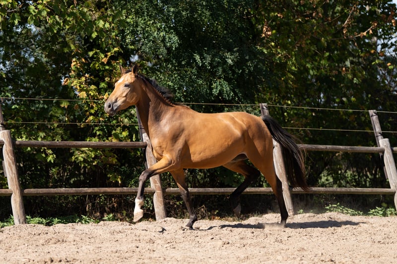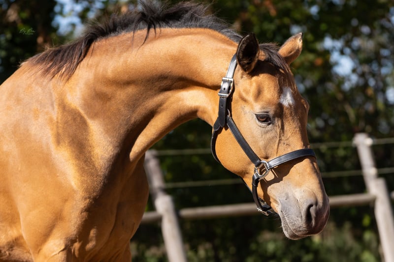 Sehr brave, talentierte vierjährige Stute. Seit einigen Monaten unter dem Sattel und nimmt die Arbeit sehr positiv auf. Mit ihrer falbfarbenen Fellfarbe und korrekter Konstitution wird sie in der Halle sicherlich eine auffällige Erscheinung sein. Sie bewegt sich mit viel Ausdruck und Antritt. Allround gezüchtet, in ihrer Abstammung sind sowohl Dressur- als auch Springlinien zu finden. Sie ist sehr lieb und anhänglich und steht mit anderen Pferden gemeinsam auf der Weide. Röntgenologisch untersucht, inklusive Hals und Rücken. Sandro's Match x Camlough Delphi