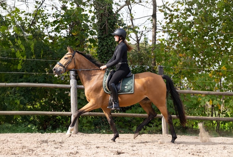 Very well-behaved 4-year-old talented mare. She has been under saddle for a few months and approaches her work positively. With her dappled coat and correct conformation, she will be an eye-catching presence in the arena. She moves with a lot of impulsion and expression. All-round bred, with both dressage and show jumping lines in her pedigree. She is very sweet and affectionate and is turned out with other horses in the paddock. Radiographically examined, including neck and back. Sandro's Match x Camlough Delphi
