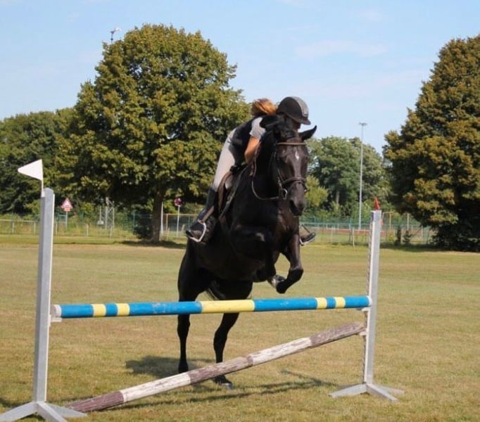 Hallo, Hiermit verkaufen wir unsere ca. 1,68 große Rappstute Love4Pleasure. Sie ist 5 Jahre alt und stammt aus Loreana (Landor S x Prinz Pilot ) x Fire and Ice ( For Contest x Coronino) . Love ist bei uns im Privatstall geboren und stand die ersten 3 Jahre in einer kleinen gemischten Herde in Offenstallhaltung. Hier sind wir oft mit ihr spazieren gegangen u haben sie mit Geduld und Liebe an den Hufschmied, Fohlen ABC u z.B. an den Pferdeanhänger gewöhnt. Vor dem Beritt ließen wir ca 30 Röntgenbilder der Beine u des Rückens machen, die alle ganz hervorragend ausfielen. Ebenfalls wurden die Zähne gemacht. Anschließend war sie im schonenden Beritt und hat sich da immer lieb, nervenstark und lernbereit gezeigt. Den Winter über durfte sie in den familiären Offenstall zurück und wir haben während der Zeit Spaziergänge sowie Ausritte unternommen. Zuletzt war sie in Springberitt, um Sie für ihre ersten kleinen Turniere und den Verkauf vorzubereiten. Sie zeigt einen guten Sprung und läuft alle 3 GGA altersentsprechend gut. Sie hat noch nie etwas Böses gemacht und probiert immer zu gefallen. Sie kennt verschiedene Hallen sowie Plätze und läuft überall zufrieden. Hier zeigt Sie sich stets lieb und nicht guckig. Sie lebt im Herdenverband und kennt Offenstall- sowie Boxenhaltung, ist schmiede- u. verladefromm. Love lebte ihr bisherige Leben auf unserem Hof u ihr zukünftiges Leben liegt uns sehr am Herzen, daher ist uns der Platz vor Preis wichtig. Für das Probereiten nehmen wir 25 Euro Pfand, diese werden beim Verkauf selbstverständlich berechnet. Händler haben keine Chance!