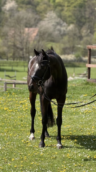 Zora is a wonderful mare. She was lovingly bred by her owner and has been ridden without any issues in the field. She enjoys jumping cross-country courses as well as natural obstacles. In dressage, she is currently at an A-level. At her first competition, she immediately won the introductory test, although in the jumping class (Springpferde A), her rider made a few mistakes, so she was not placed there. She has also been successful in trail riding and is accustomed to being loaded. She is being sold due to the owner's lack of time. The price is in the lower range of the category. A trial ride costs €30.