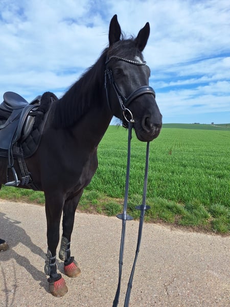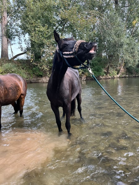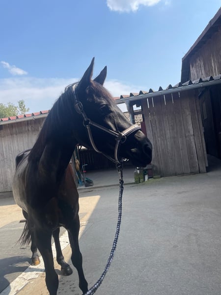 Brezel, geboren im Juli 2021, hat wirklich einen unschlagbaren Charakter. Leider hat sich herausgestellt, dass ihr Körper andere Pläne hat als eine „Reitpferdkarriere“. Deshalb sucht sie nun einen Platz im Sozialwesen – als liebevolle, humorvolle Beistellerin, professionelle Möhrchenvernichterin und Quatschmacherin. Sie ist sehr sozial und anderen Pferden gegenüber äußerst ausgeglichen. Kein Arschloch! Ich möchte kein Geld für sie, allerdings ist mir ein Schutzvertrag sehr wichtig. Brezel hat ein Endmaß von ca. 1,70 m, ist extrem menschenbezogen und freundlich und lernt unglaublich schnell – vor allem Tricks haben es ihr angetan. Sie ist nicht dominant, kein Pferd, das testet, und definitiv keine Drama-Queen, sondern einfach eine coole Socke mit Goldkern (vielleicht heißt sie deshalb im Pass „Touch of Gold“). Sie kennt Hunde, Kühe, Ziegen, Schafe, Autos, LKWs, Traktoren, Bobbycars und Kinder – sie wurde sogar schon von einer Dreijährigen geputzt. Gelassenheitstraining und Umweltreize aller Art sind für sie absolut kein Problem. Aktuell steht sie im Großraum Heilbronn. Trotzdem bringt Brezel einige gesundheitliche Besonderheiten mit. Sie ist durchtrittig und daher nicht für die Zucht geeignet. Sie war zwei Jahre mit Onion-Shoes beschlagen und läuft aktuell barhuf. Zudem besteht ein minimaler Engstand zwischen LW3 und LW4 (Röntgen 05/2025), der leider Rückenschmerzen verursacht. Diese führen zeitweise zu unberechenbarem Verhalten beim Reiten und Longieren, wie Steigen, Bocken, Verweigern oder starkem Hochreißen des Kopfes. Daher wird sie als nicht reitbar abgegeben. Früher hatte sie leichte Magengeschwüre, die jedoch vollständig behandelt wurden – sie ist kein klassisches Magenpferd und eigentlich sehr nervenstark. Im Februar 2026 wurde eine Entzündung hinten rechts diagnostiziert, weshalb sie eine Schrittpause hatte, obwohl sie nie lahm war. Es liegen 18 Röntgenbilder aus der AKU 2023 vor. Das Verladen muss noch etwas geübt werden, was aber nach Absprache vor Ort möglich ist. Was vielleicht paradox klingt: Trotz dieser Besonderheiten ist Brezel ein sehr robustes Pferd. Sie stand bei mir ganzjährig draußen, bei Wind und Wetter, die ersten beiden Winter komplett ohne Decke und zuletzt nur aufgrund des Rückens eingedeckt. Sie war niemals lahm, hatte keine Kolik, kein Asthma, benötigt keine Dauermedikamente und hat keinen Befund, der sie grundsätzlich unreitbar machen würde. Allerdings zeigt sie deutlich, wenn sie Schmerzen hat – besonders beim Longieren und Reiten. Wenn man sie ohne Sedierung reitet, wird sie kopflos, und das entspricht absolut nicht ihrem Wesen. Sie steigt und bockt, und wenn man ihre Signale ignoriert, wird das Verhalten stärker. Sie wurde bereits zweimal im Rücken behandelt (Injektionen), was eine enorme Veränderung gezeigt hat. In dieser Zeit war sie wieder „meine“ Brezel – die, die ich kenne: motiviert, klar im Kopf, mit Spaß an der Arbeit, aufmerksam und absolut zuverlässig. Wir konnten sowohl alleine als auch in der Gruppe ausreiten – etwas, das ich aktuell nicht mehr verantworten würde. Normalerweise ist sie ein Pferd, das selbst in Schreckmomenten ruhig bleibt. Sobald die Wirkung der Behandlungen nachlässt, die Muskulatur abbaut oder andere Faktoren dazukommen – ehrlich gesagt weiß ich nicht genau, welche – wird es jedoch schnell gefährlich. Auch an der Longe zeigt sie dann Verhalten, das nicht korrigierbar ist. Alles, was erzieherisch bedingt ist, ließ sich bei ihr immer problemlos klären – diese Ausbrüche passen schlicht nicht zu ihrem Charakter. Deshalb bin ich überzeugt, dass die Ursache im Schmerz liegt und nicht im Wesen. Genau aus diesem Grund suche ich jemanden, der sie ohne Druck als Beisteller liebt. Wenn sich nebenbei Wege finden, ihr wieder schmerzfreie Bewegung zu ermöglichen, wäre das natürlich ein absoluter Glücksfall – denn Brezel bringt unglaublich viel Talent mit und macht sehr viel Spaß in der Arbeit. Ich wünsche mir für sie einen liebevollen Beistellplatz, idealerweise im Offenstall, bei Menschen, die Freude daran haben, mit ihr zu arbeiten, zu tricksen, zu schmusen und einfach Zeit mit ihr zu verbringen. Sie ist wirklich ein kleiner Quatschkopf und bringt einen oft zum Lachen. Wichtig ist mir, dass sie nicht mit dem primären Ziel übernommen wird, sie wieder aufzubauen. Ich kann nicht garantieren, dass das funktioniert, und möchte unbedingt vermeiden, dass sie zum Wanderpokal wird. Wenn sie jedoch in verantwortungsvollen Händen ist, die sie ohnehin als Beisteller halten möchten und nebenbei schauen, was möglich ist, ist das natürlich vollkommen in Ordnung und auch gut für ihren Kopf. Sollte es tatsächlich jemand schaffen, sie wieder reitbar zu machen, wird dieser Mensch ein außergewöhnlich tolles Pferd an seiner Seite haben. Es gibt noch viel mehr über Brezel zu erzählen, und ich nehme mir gerne Zeit, alles in Ruhe zu besprechen. Bitte melde dich aber nur, wenn dir bewusst ist, dass ich aktuell davon ausgehe, dass sie nicht reitbar ist und dass sie situationsbedingt gefährlich werden kann. Die gesamte Situation fällt mir unglaublich schwer. Deshalb möchte ich lange Gespräche vermeiden, die von vornherein nicht zielführend sind, ebenso wie Kommentare darüber, warum ich sie abgebe oder was ich noch alles versuchen könnte. Ich habe sehr viel Zeit, Geld und Herzblut investiert und alles getan, was mir möglich war. Leider komme ich an diesem Punkt nicht weiter. Auch Händler und Schulbetriebe kommen für mich nicht infrage. Ich möchte auf keinen Fall, dass sie übernommen wird, um sie dann – medikamentös behandelt – gewinnbringend weiterzuverkaufen. Das wird vertraglich abgesichert. Zubehör ist ebenfalls vorhanden und kann bei Bedarf übernommen werden – das besprechen wir dann persönlich. Ich freue mich sehr über deine Nachricht.