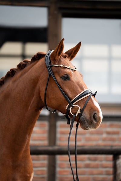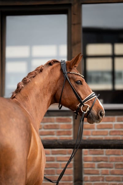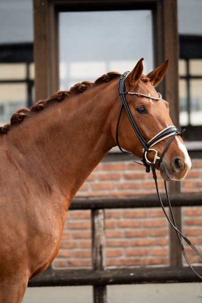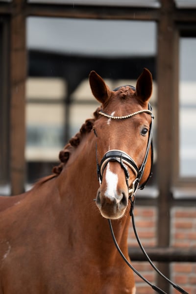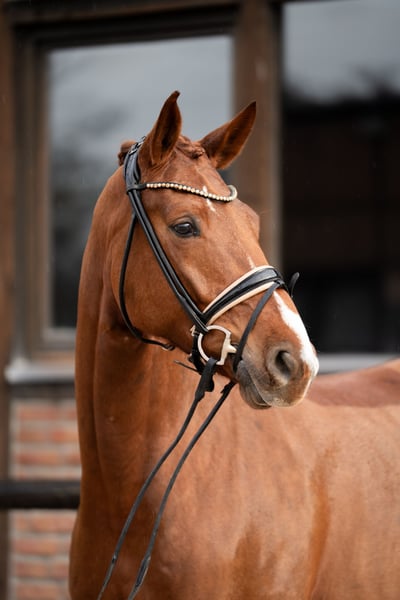 Feldgold’s Poesie, elegancka klacz o typie ogiera, wyróżniająca się doskonałą jakością i świetnymi cechami użytkowymi. Posiada niezwykle spokojny i łatwy charakter. Obecny poziom wyszkolenia to bezpieczny koń do ujeżdżenia na poziomie A, w drodze do poziomu L. Klacz, która oczaruje każdego!