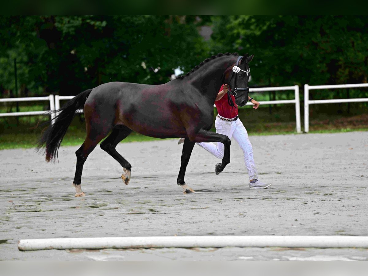 Typical mare with very good movements. She has already produced two foals with very good type and movements. Currently, she is in foal to Desperado. She has an excellent temperament and is easy to handle. She completed her performance test with a score of 8.30. The last three pictures show her current foal, a colt by Glamourdale. For inquiries: Florian Runge 0174/33 21 987