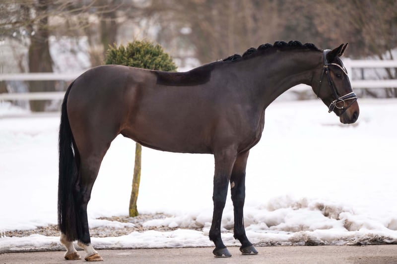Liebe Interessenten, Für Terminvereinbarungen Probereiten senden Sie mir bitte eine WhatsApp. Für weitere Fragen bin ich tagsüber per WhatsApp erreichbar, telefonisch erreichen Sie mich am Besten zwischen 16 und 19 Uhr. Ich freue mich auf eine Kontaktaufnahme www.angelina-devittorio.de ⭐️Daily⭐️ Alter: 6 Jahre (2020) Größe: ca 1,65 m Abstammung: Donier x Breitling Ausbildungsstand: Dressurpferde A mehrfach siegreich und platziert AKU: Gute Röntgenbilder vorhanden Standort: 87700 Memmingen Zum Verkauf steht eine wunderschöne, kompakte sechsjährige Stute von Donier. Sie ist eine absolute Traumstute mit drei hervorragenden Grundgangarten, die sie bereits eindrucksvoll unter Beweis stellen konnte, unter anderem mit einem Sieg in einer Dressurpferdeprüfung der Klasse A. Im täglichen Umgang zeigt sie sich super lieb, unkompliziert und jederzeit brav, ihr Wesen ist ausgesprochen freundlich und angenehm. Auch unter dem Sattel ist sie brav und zuverlässig, benötigt jedoch einen etwas versierten Reiter, der sie korrekt weiter fördert. Sie ist niemals böse, eignet sich aber nicht für unerfahrene oder schwache Reiter. Für Amateure ist sie sehr gut geeignet, vorausgesetzt ein solides Reitniveau ab L. Aktuell befindet sie sich auf Dressurpferde-L-Niveau und ist demnächst startklar für diese Klasse. Gute Röntgenbilder liegen vor. Der Verkauf erfolgt aufgrund von Aufgabe des Reitsports und ausschließlich in allerbeste Hände. ⚜️Tel: 0171-3438949 ⚜️www.angelina-devittorio.de ⚜️a.devittorio@web.de ⚜️https://www.ehorses.de/angelinadevittorio Facebook und Instagram Angelina De Vittorio