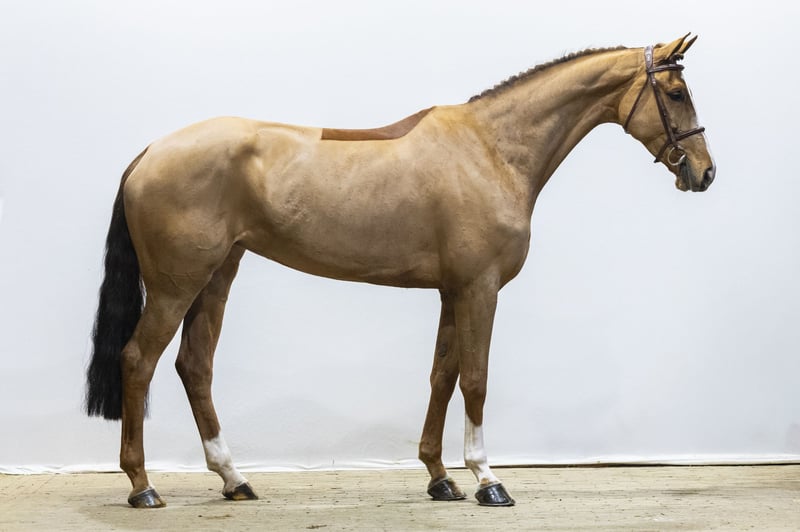 A light-footed horse with easy scope and experience at 1.20m level. She is pleasant to ride and combines quality with a good attitude. She has a big canter, is quick off the ground and jumps with conviction. Beautifully long-legged and modern in type. A horse with the right blood for sport and the mindset to develop further.