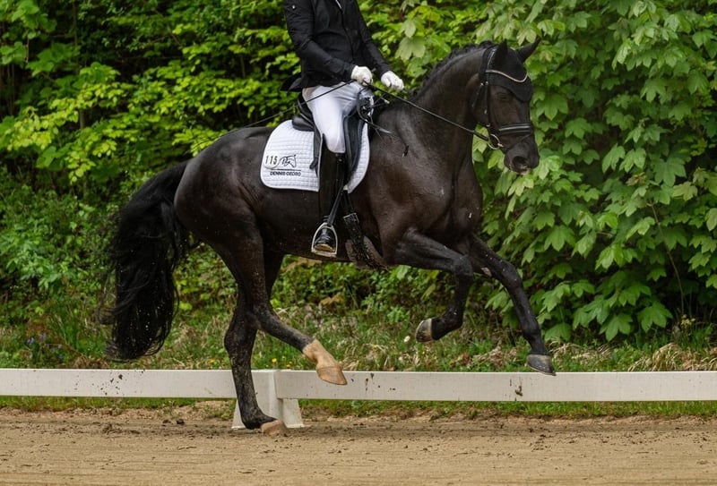 Due to time constraints, it is with a heavy heart that I am offering for sale an exceptionally typey and movement-rich Oldenburg State Premium mare, born in 2020, by Escamillo out of a For Romance OLD mare. This 5-year-old mare impresses equally in sport and breeding through her quality, rideability, and impeccable character. She has already achieved victory in dressage horse classes at the L level and has been placed multiple times at high rankings in qualification competitions for the Bundeschampionate, with overall scores up to 7.6. Her mare performance test was completed with an outstanding total score of 8.18, earning her the State Premium and an invitation to the Elite Mare Show in Rastede. This makes her well-qualified for successful use both in sport and breeding—an excellent prospect for high-level dressage. Her sire, Escamillo, is among the most sought-after dressage sires of recent years, consistently combining type, rideability, and outstanding movement quality in an ideal manner. In daily handling, she is absolutely well-behaved, personable, and uncomplicated. She is farrier- and loading-friendly, clear-minded, always willing to perform, and learns incredibly quickly. Due to her high performance potential, she is not suitable for beginners and requires an ambitious, experienced rider to further develop her qualities. Veterinary examinations at age three revealed flawless X-ray results. To date, the mare has never been ill. A special mare for riders or breeders who value quality, character, and future potential. Location: Stuttgart area.