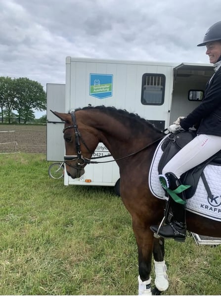 Diese hoch moderne Tochter des For Dance ist ein motiviertes Dressurpferd mit 3 ausgezeichneten Grundgangarten! „Faye“ kommt direkt vom Züchter und ihr wurde ausreichend Zeit zum reifen gegeben. Sie ist jetzt Dressurpferde A fertig und hat auch ihren ersten Turnierauftritt erfolgreich und sehr brav gemeistert. Auch im Umgang ist sie unkompliziert und ein liebes Pferd! Wer ein kleines, handliches Pferd mit viel Qualität sucht wird viel Freunde an ihr haben! Sehr guter Tüv liegt vor. Kennenlernen und ausprobieren jederzeit gerne nach telefonischer Absprache möglich!
