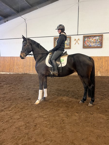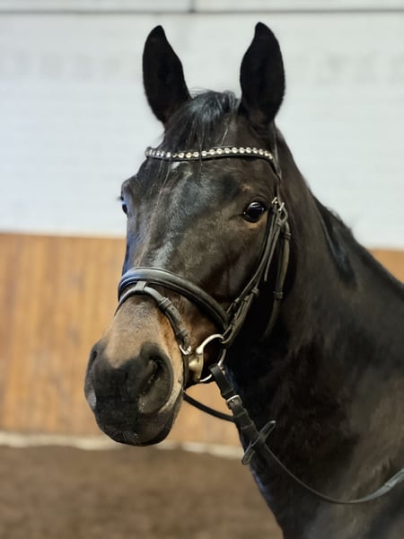 Elegant Oldenburg Mare for Sale – Ideal for Dressage For sale is a beautiful dark bay Oldenburg mare, born in 2019. Standing at 16.3 hh, she impresses with her elegant appearance and pleasant temperament. She is well-suited for dressage and demonstrates great talent and willingness to learn. This reliable and talented partner is perfect for ambitious riders seeking a versatile and characterful dressage companion. Please feel free to contact me for more information or to arrange a viewing.