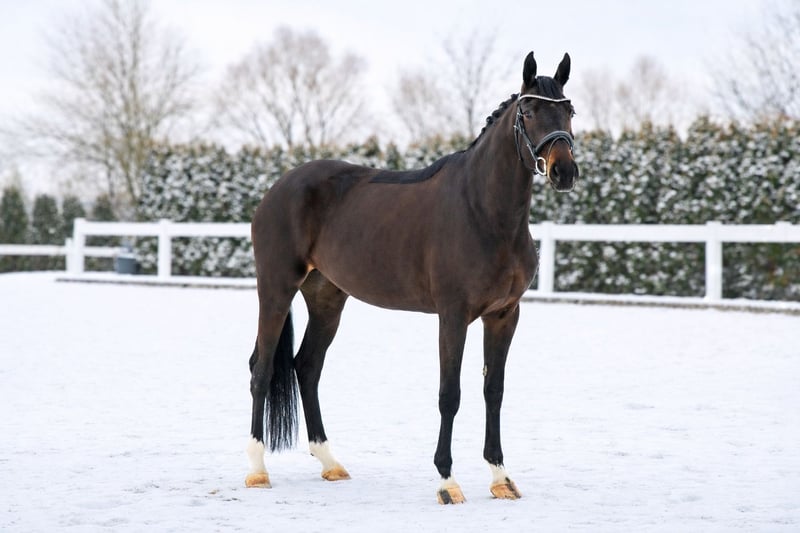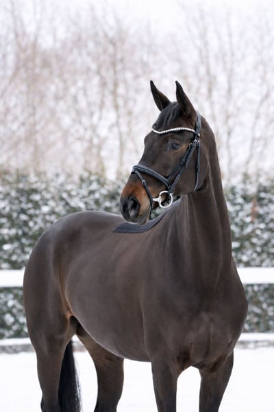 „Goldie“ ist ein Pferd für die Zukunft. Sie hat einen lieben und ruhigen Charakter, ist verträglich in der Herde, dem Menschen gegenüber offen und freundlich und sehr gut erzogen. Dadurch ist sie absolut unkompliziert im Umgang, Schmied, Verladen - alles gar kein Thema. Goldie ist nicht stutig, man merkt keine Rosse o.ä und sie ist nicht stutig oder zu sensibel am Bein! Die Stute kommt direkt vom Züchter zu uns. Goldie ist ansprechend für viele Zielgruppen. Sie ist geeignet für den ambitionierten Dressurreiter der ein Pferd zum Ausbilden und Fördern sucht. Gleichermaßen ist Goldie auch bei einem Amateur super aufgehoben. Durch ihre ruhige und zuverlässige Art geht sie sehr souverän mit dem Reiter und neuen Aufgaben um. Beim Reiten überzeugt Goldie mit ihren herausragenden Grundgangarten und ihrer hohen Reitqualität. Sie geht einfach in Anlehnung, ist sitzbequem und immer lernwillig. Goldie ist fein im Maul und reagiert gut am Sitz, durch diese Eigenschaften lässt sie jeden Reiter gut aussehen. Sie kann Außengalopp, einfache Wechsel, Seitengänge, Travers und springt schon viele sehr gute Wechsel. Da wir uns beim Turnierreiten auf das Springen konzentrieren, war diese tolle Stute noch nicht am Turnier, war aber schon mit auf mehreren Lehrgängen und Auswärtstrainings mit dabei und meisterte das hervorragend! Sie kennt die Arbeit an der Longe und auch Stangen und Gymnastikarbeit und ist dabei immer motiviert und sehr routiniert. Wichtige Hinweise: • Stockmaß-Angaben sind geschätzt und nicht exakt nachgemessen • Alle Beschreibungen sind subjektive Einschätzungen des Verkäufers und keine zugesicherten Eigenschaften • Das Organisieren von einem Transport ins neue Zuhause ist kein Problem! Aktuelle Röntgenbilder ohne Befund sind vorhanden, sowie eine einwandfreie klinische Untersuchung. Bei Interesse und weiteren Fragen melden Sie sich gerne jederzeit telefonisch unter 015140555583. Wir sind auch am Wochenende und an Feiertagen erreichbar. Ein Probereiten ist jederzeit möglich.