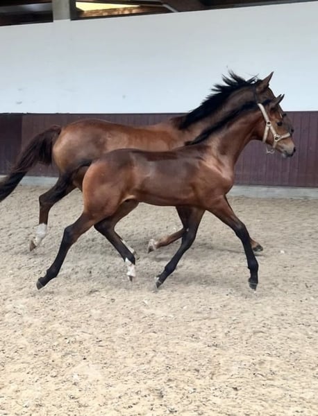 Beautiful and sweet 8-year-old Oldenburg Verband Premium mare by Vito Corleone-Sandro Classic-Rimini, standing at 16.1 hh. With a heavy heart, she is being offered privately to top-quality breeding. She has already foaled two foals, including a gold-premium colt by Belantis II. Further details gladly provided via private message. Strictly to be used as a broodmare.