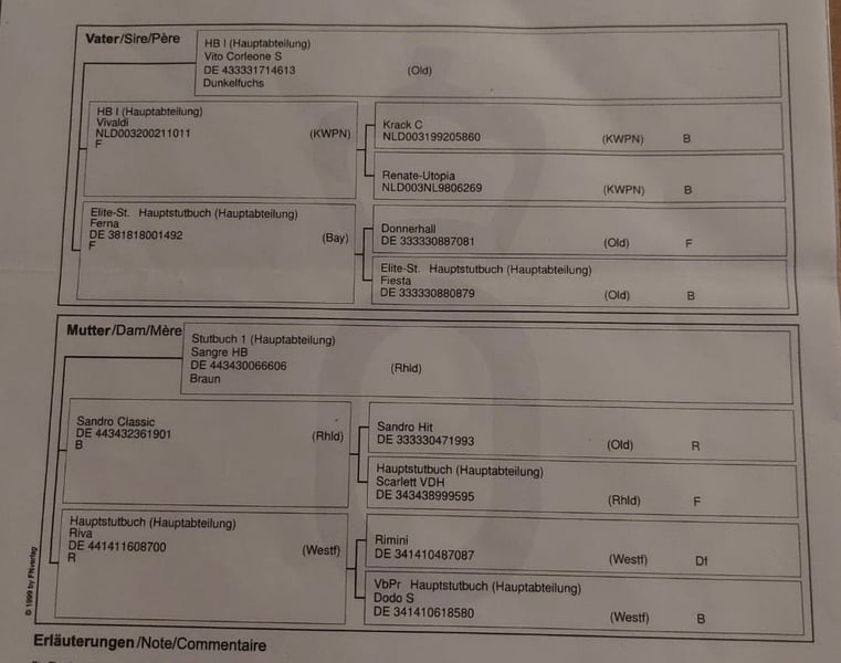 Hermosa y cariñosa yegua de 8 años de Oldenburger, premiada por la Verband, por Vito Corleone-Sandro Classic-Rimini, con una altura de 1,65 m. Se cede con mucho pesar a manos de un criador de confianza. Ya ha tenido dos crías, entre ellas un potro semental premiado con oro por Belantis II. Más detalles disponibles por mensaje privado. Se solicita exclusivamente para reproducción.