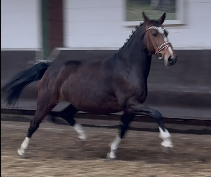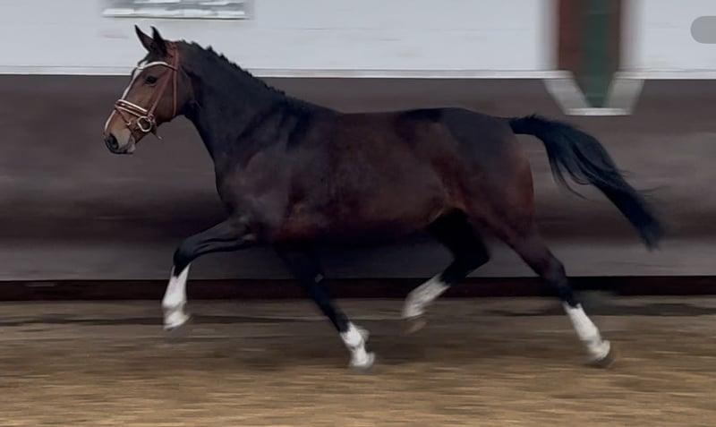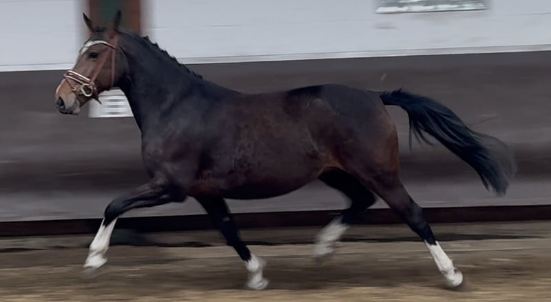 A colorful Million Dollar daughter with great movement, in foal for 2025 by the champion stallion, HLP winner and BuCha finalist Cafe au lait, who has been attracting attention for several years with his incredibly successful offspring in advanced level dressage and show jumping! Cafe's "Casimir" (Cafe au lait x Calido x Grannus) was the celebrated top price at the Oldenburg Elite Auction, was a serial winner in medium (M) level dressage at a young age and was a serial winner again in his first advanced (S) level dressage competitions at the age of 7! He is now victorious in international Intermediaire I classes. Kasselmann's mare Cafe's Caletta (Cafe au lait x Calato) has also already won advanced (S) level dressage and international Grand Prix. Cafe's Matts (Cafe au lait x Don Frederico) was the second most expensive dressage horse at the Oldenburg Summer Mixed Sales. Other young horses out of jumping-oriented dams have already placed several times in tests for young dressage horses from novice to medium level and are remarkably strong-moving and clear-headed. There is no question that the Cafe au lait offspring are convincing in show jumping up to advanced level. The licensed Cafe's Champus was Vice World Champion of young horses under Rene Tebbel and is also in stud with us. Also licensed and from our breeding program: Cafe Junior (Cafe au lait x Silvio I), placed internationally in advanced (S*) level show jumping competitions. Cafe's Columbo (Cafe au lait x Belstaff): successful in sport in France. Cafe's Don Rubin (Cafe x Donnerhall): 4yo bronze in the final of the Dobrocker Deister Jumper Championships in his first elementary (L) level show jumper class. Already victorious at novice level for young show jumpers. Cafe au lait himself was a Bundeschampionat finalist under Philipp Weishaupt and has been successful up to advanced (S***) level in show jumping, but also has three spectacular gaits and has been trained to advanced (S) level in dressage. Stationed with Paul Schockemöhle, he has already sired a number of internationally successful show jumpers, including "Royce", victorious in the FEI CSI5* $500,000 Rolex Grand Prix Wellington. Our foals receive daily mineral feed and foal starter, regular EQUISTRO Haemolytan and Ipaligo Foal, worming and a farrier are of course also a matter of course. The dams also receive special mare feed throughout their pregnancy, daily juice feed and linseed oil, as well as hay ad libitum. This ensures that our offspring are always in the best of health! More foals and offspring from our own breeding on request. Some of them can be found under the other advertisements. We produce around 20-25 cafe au lait foals every year. There are also always a few broodmares in foal for sale. Video requests etc. in advance only possible via WhatsApp!