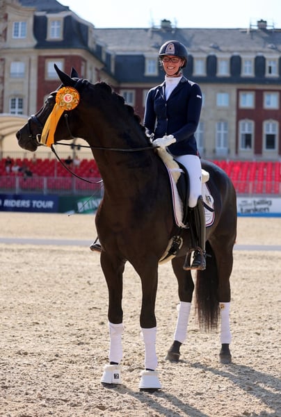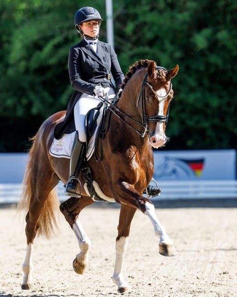 Oferujemy tutaj bardzo interesującą klacz hodowlaną po samodzielnie odnoszącym sukcesy ogierze Baron, który wyróżnia się szczególnie swoją skocznością. Matka klaczy pochodzi od klaczy Sally, która już wydała na świat kilka wspaniałych klaczy sportowych. Baronesse była w przeszłości użytkowana jako koń skokowy, a w 2024 roku została zapłodniona. W marcu 2025 roku urodziła pięknego, długonogiego ogiera od aktualnego mistrza Niemiec, Sky. Źrebię zostało sprzedane w ręce, które będą wspierać jego rozwój sportowy. Na rok 2026 Baronesse jest w ciąży z wiceświatowym mistrzem Glamdale WP.