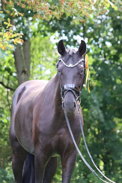 Wir bieten hier eine sehr interessante Zuchtstute von dem selbst erfolgreichen Hengst Baron an, welcher sich durch seine Rittigkeit besonders auszeichnet. Mütterlicherseits stammt die Stute von der Stute Sally ab, welche bereits mehrere tollen Sportstuten hervor gebracht hat. Baronesse wurde in der Vergangenheit geritten und dann in 2024 besamt. Im März 2025 brachte sie ein wunderschönes langbeiniges Hengstfohlen von dem amtierendem Bundeschampion Sky. Das Fohlen wurde in sportlich fördernde Hände verkauft. Für 2026 ist Baronesse tragend von dem Vizeweltmeister Glamdale WP