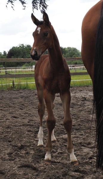 From an internationally successful mother who also comes from our breeding! Colorful, dual-purpose, and equally stylish filly for all disciplines. With the typically clear-headed and balanced character that is characteristic of the Café au Lait line, this young horse will be a great partner for professionals, amateurs, and less experienced riders alike, whether for sport or leisure! From the second crop of our young stallion "Café's Don Rubin," who already impressed at his performance test as the absolute youngest horse at just three years old! Born only in August, he shone despite being six months younger than many other three-year-olds, showcasing his coolness, rideability, and positive work ethic. Last year, at four years old, he won at his third competition in the Spring Horse A class and was highly placed as the only four-year-old against five and six-year-olds with scores of 8! He then won bronze in the final of the Dobrocker Deister Spring Horse Championship in his very first Spring Horse L! Subsequently, he also won in Spring Horse L. At the same time, despite his young age, he also serves as a children's teaching horse and easily completes E-jumping courses with 12-year-old boys. He impresses across the board with quality, both in terms of conformation and movement! He continues to amaze daily with his rideability, willingness to learn, and performance, remaining balanced and composed like an old pro. He is also a dream in the field! Absolutely no stallion behavior despite being a stallion. Our foals receive daily mineral feed and foal starter, regularly EQUISTRO Haemolytan and Ipaligo Foal, and worming treatments and farrier care are, of course, a given. The mares also receive special mare feed throughout the entire pregnancy, daily juice feed, and linseed oil, as well as hay ad libitum. This ensures that our offspring are always in the best health condition. Further foals and young horses from our own breeding are available upon request. There are also always several pregnant broodmares for sale. Video inquiries, etc., are only possible in advance via WhatsApp!