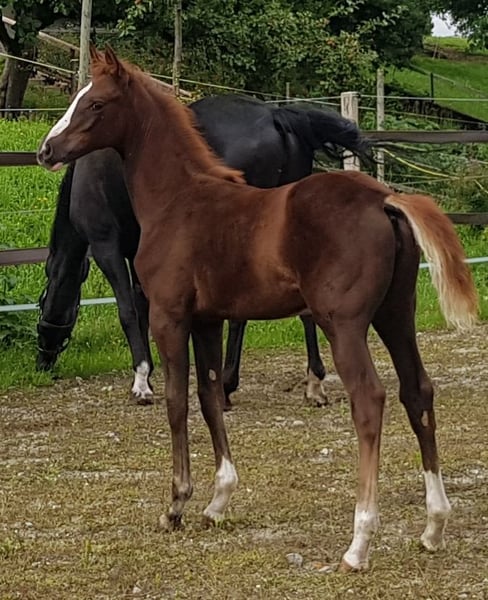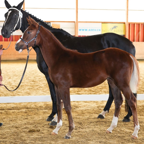 Barcelon CH ist ein Stutfohlen mit sehr guter Abstammung sowohl mütterlicher- und vätterlicherseite. Sie wurde an der Fohlenschau mit 8/7/8 auf dem 4. Rang geköhrt. Mit ihrem Ausdruck und tollem Charakter wird sie dem zukünftigen Besitzer sowohl im Sport, Freizeit oder in der Zucht glücklich machen.