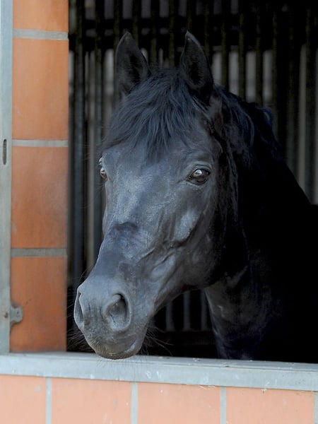 Cavallo stallone nero espressivo con ottimi passi di base e successo sportivo fino alla classe difficile. Fondamentalmente montabile e gestibile da chiunque. PER FAVORE SOLO RICHIESTE SERIE!!!