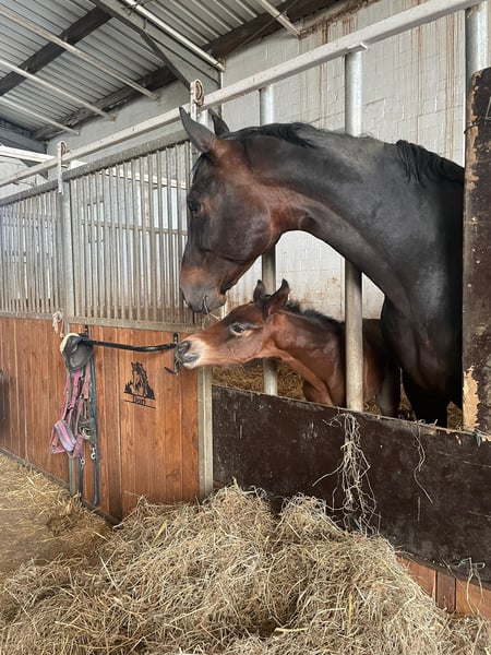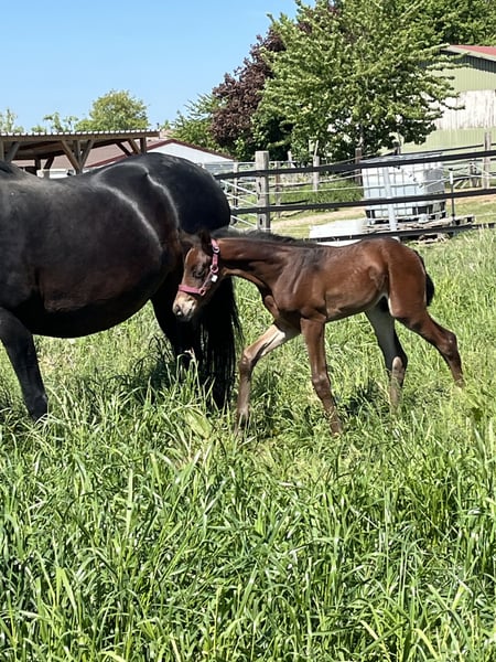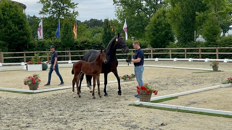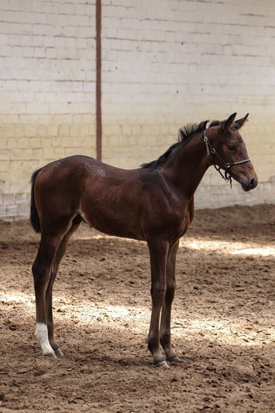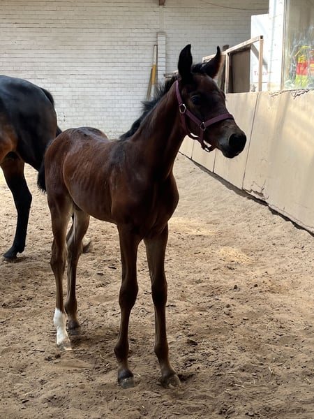Our little treasure has an active hindquarters with enough movement through the body. He is very confident while always being quite well-mannered and very cuddly. Of course, he already knows the foal ABC and is halter trained. So it's definitely worth stopping by and taking a look.