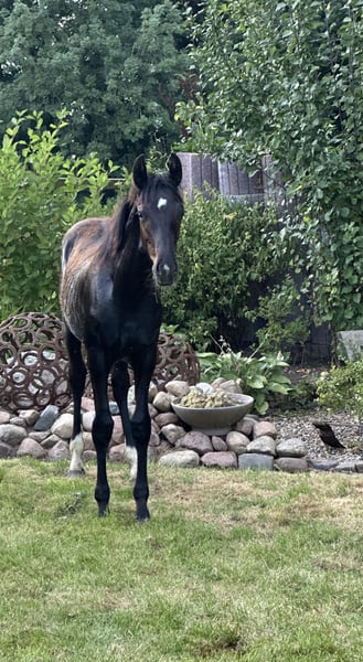 For sale: Noble Oldenburg stallion – Year of Birth 2025 Vision x Donnerschwee https://www.horsetelex.de/horses/pedigree/2658643/vx A stunning black Oldenburg stallion is available, promising for dressage competition. The young stallion impresses with his elegant appearance, pleasant temperament, and distinguished pedigree. This talented young stallion is ideal for ambitious riders seeking a reliable partner for dressage. Please note: The foal is an embryo transfer.
