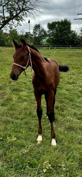 Pretty foal by For Romance and Quatermann. Papers are not yet available, they are applied for. Current pictures and videos from December 27, 2024. Very well-behaved and easy-going. He was separated from the herd for the first time for the video. It went really well.