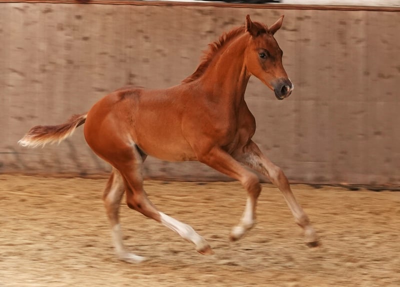 RPZ Dreamcatcher is a beautiful young stallion with excellent movement potential and a great character. His dam Bella Rouge RPZ comes from the famous Oldenburg Blankenese line. His sire DSP Dream Royal was a licensing and stallion performance test winner with a dream score of 10 for rideability and was also a placed Bundeschampionat finalist.