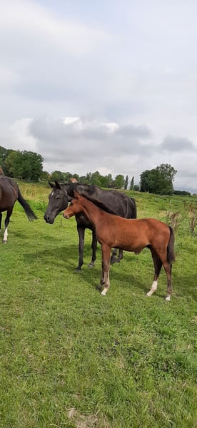 Jeune poulain entier vif, adapté au sport moderne. Issue d'une mère performante en compétition. Élevage Josef Wernke, Garrel.