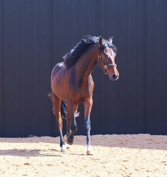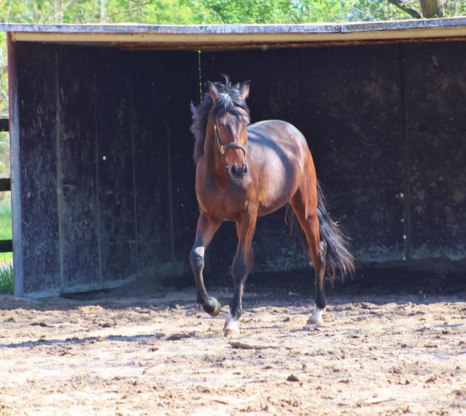 Auffallend schöner Oldenburger Hengst 2023 von VIVA GOLD/Ron Rubin/Diamond Hit mit allen Pluspunkten um später im höchsten Amateursport ganz vorne zu laufen. Der Hengst ist super schick im Typ mit sehr gutem Bewegungsablauf .Er will auf jeden Fall ein kleiner "Hingucker "werden. Sehr guter Schritt, elastischer Trab und wunderbarer Bergaufgalopp zeichnen ihn jetzt schon aus, obwohl er noch mitten in der Entwicklung steht. Video https://www.youtube.com/watch?v=5FH_xAvU59I Ebenfalls für den Amateursport ein kleiner Traum, da er absolut unkompliziert und ausgeglichen ist. Der Zeit dem Altere entsprechend noch roh und in Hengstherde . Traum zum Selberausbilden ideal für Amateure mit höchsten Ansprüchen an Charakter, Rittigkeit und Bewegungsqualität. Absoluter Hingucker zum Verlieben der in die richtigen Hände möchte !