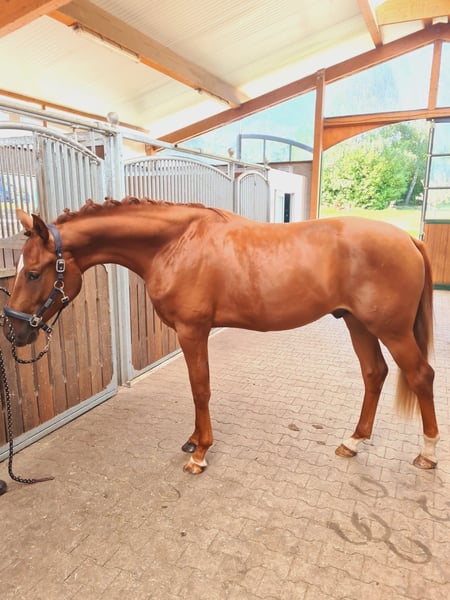 Schweren Herzens biete ich meinen dreijährigen Oldenburger Hengst (von Vitalis x Gribaldi) zum Verkauf an. Leider fehlt mir die Zeit ihn optimal zu fördern. Er ist ein echter Rohdiamant für den Dressursport. Mit ca. 167cm Stockmaß wird er bestimmt ein toller Partner für das große Viereck werden. Er ist nervenstark, lieb im Umgang (auch beim Schmied), liebt Aufmerksamkeit und Wasser. Wegen seines Alters ist er kein Anfängerpferd. Er ist gechipt, geimpft, entwurmt und hat einen Oldenburger Pferdepass. Nur in allerbeste und auch fördernde Hände abzugeben. Um Reittourismus zu vermeiden ist Probereiten gegen eine Gebühr von 40 Euro möglich und wird bei Vertragsschluss mit dem Kaufpreis verrechnet. Dies ist ein Privatverkauf. Platz vor Preis. Meldet euch gerne mit Telefonnummer über eHorses, ich werde dann zeitnah zurückrufen.