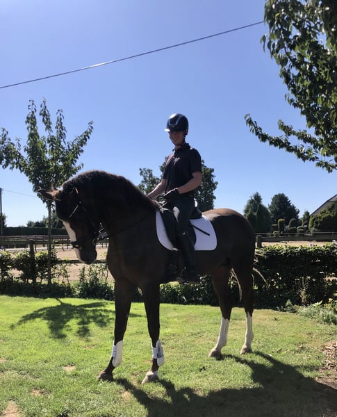 À vendre, un magnifique Oldenburger bai foncé, hongre de 3 ans, agréé par l'Anglo European Studbook et donc fraîchement monté. Actuellement, il mesure 172 cm. Sezuan’s Donnerhall x Don Gregory. Exprimant une grande présence, toujours prêt à apprendre, motivé et travailleur. Déjà solide, agréable à monter et toujours facile à manipuler. Son caractère est équilibré et affectueux, tourné vers l'homme. Pas de vices. Résultats de radiographies sans anomalies. Bien sûr, il est ferré et chargé sans problème. Il connaît les enfants, les chiens, les chats, les tracteurs, etc. Il est habitué à la vie en groupe dans un box ouvert ainsi qu'à l'écurie. Il a maintenant un box spacieux pour sa formation. Jusqu'à présent, il est exempt de toute blessure ou maladie. Je serais heureux d'envoyer de courtes vidéos et des détails importants par message privé, mais cela ne remplace pas une visite sur place, une rencontre et un essai ! Localisation : Allemagne.