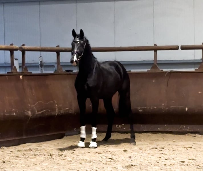For sale is a promising young horse with exceptional quality. It impresses not only with its correct conformation and movement but also with a very friendly and calm temperament – a horse with a bright future and excellent potential for further training. Its dam is the full sister of the vice world champion and GP successful Ferrari OLD! For more information, please contact us by phone (or via WhatsApp). +49 160 97927359