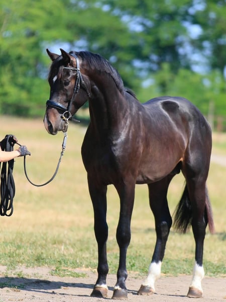 Jupiter SV 2023 • Étalon • Oldenburg • Prospect de dressage Fils puissant de l'« Empereur » Jovian, né à Status-Victoria DBS. Un poulain grand et impressionnant avec une forte conformation, des allures expressives et une énorme puissance dans les membres postérieurs. Une tête et un cou attrayants, une ligne de dos solide et des marques élégantes complètent son apparence. Pedigree de premier plan : Jovian × For Romance I — l'une des lignées de Grand Prix les plus réputées d'Europe. Jupiter SV promet un avenir brillant dans le sport ou l'élevage. Prix : 16 000 € Exportation possible.