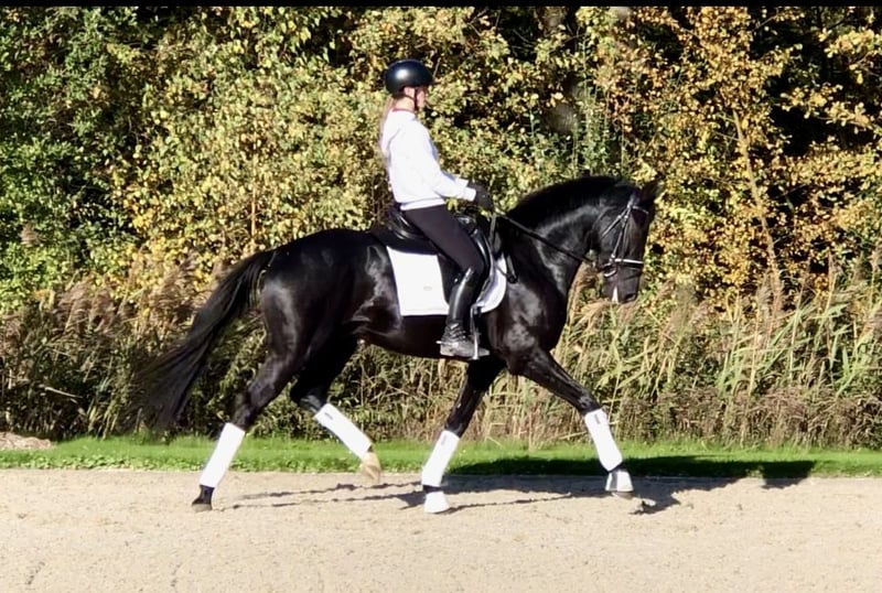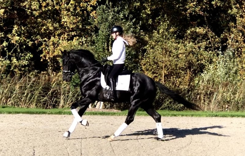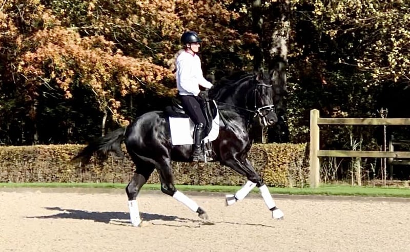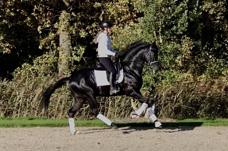 Deze 4-jarige hengst is klein van formaat, maar maakt een grote indruk. Drie goede gangen. Veel balans in draf en galop. Lichtvoetig en een droom om op te zitten. Turneerervaring. Gedraagt zich goed tijdens transport. Onder de waarde aangeboden vanwege kopproblemen.
