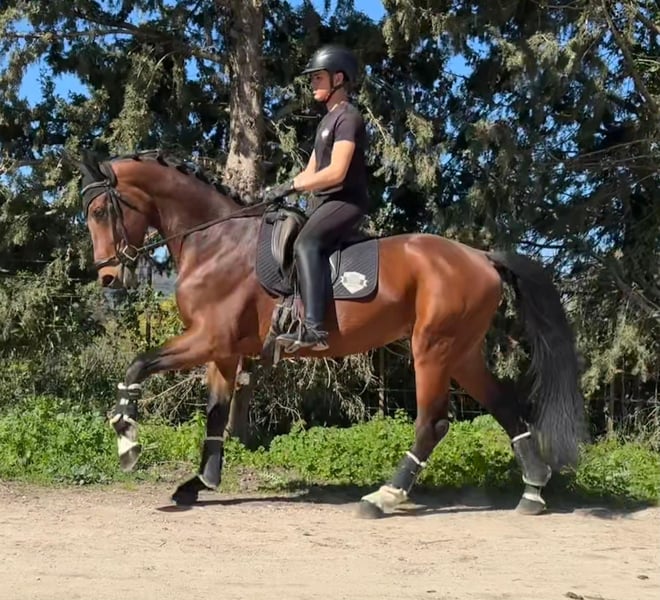 OLDENBURGO 5 AÑOS ENTERO 1,70 cm MUY NOBLE Y TRABAJADOR NIVEL EJERCICIOS LATERALES , TROCADOS INICIADO EN PIAFFE Y CAMBIOS SALIENDO A CONCURSOS ACORDE. SU ESAD SIN PROBLEMAS RAYOS X Y PIRO BELLÍSIMO M X PAINTED BLACK X PION