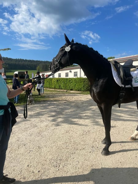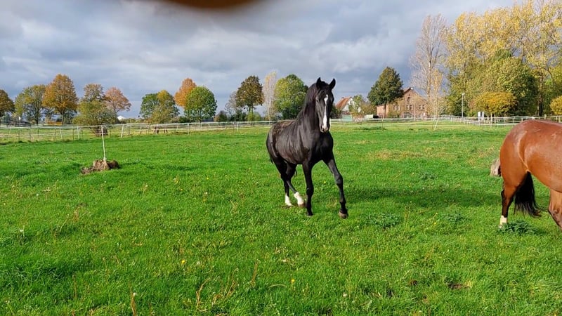 Brahmshofs Bailador mit ganz viel Ausdruck und Talent für Versammlung ausgestatteter Hingucker steht über Sportpferde Brähler ihrer Stute zur Verfügung. Er wird ins Oldenburger Hengstbuch eingetragen. Außergewöhnliche Gesundheit mit in der 2. Generation ECVM frei, WFFS frei, PSSM2 frei und klinischer und röntgenologischer TÜV ohne Befund. Schonend und spät angeritten hat er sich schon sporterfolgreich gezeigt. Fast alle Prüfungen (Reitpferde und Dressurpferde A), die er gestartet wurde, hat er mit hohen Noten gewonnen. Er absolvierte seinen 50 Tage Test mit der hervorragenden Wertnote von 8,15. Insbesondere der Schritt wurde auch dort mit einer 9 bewertet. Charakterlich ist er ebenso wie sein Vater Baju B absolut einwandfrei. Video 3jährig unmittelbar nach dem Anreiten