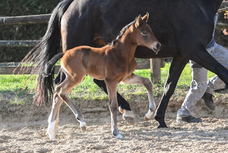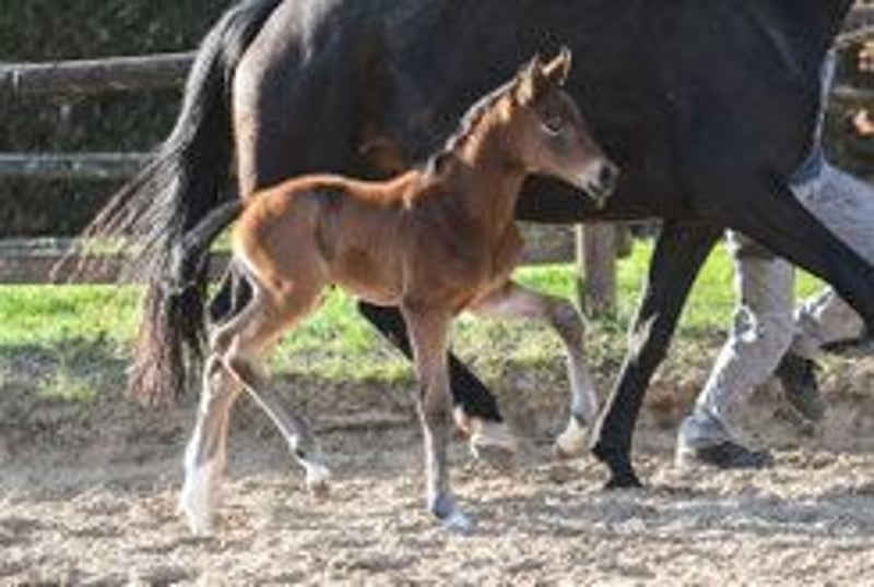 Fohlenankündigung: Wir bekommen im März ein Fohlen v. Va Bene aus der Chanel v. Christ. Sie stellte in der Anpaarung mit Viva Gold schon den 2. Spitzenpreis bei der Onlinefohlenauktion in Vechta. Hengst war zur Körung in Vechta zugelassen, vertrat sich dann aber an der Longe. Die beiden anderen Geschwister von Bon Esprit und Bonds (ebenfalls mit Auktionszulassung) waren ebenfalls sehr bewegungsstark.