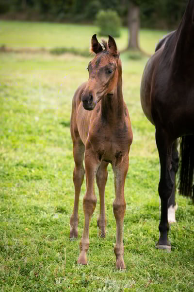 Zum Verkauf steht ein vielversprechendes, dressurbetontes Oldenburger Hengstfohlen, geboren am 22.6.2025. in dunkelbrauner Jacke ohne Abzeichen Er wird ein Mindestmaß von 1,70m erhalten. Dieser Hengst überzeugt durch seine ansprechende Bewegungsqualität, sowie seiner zutraulichen, dem Menschen gegenüber zugewandte Art. Er wächst in einem artgerechten Umfeld auf und wird regelmäßig gefördert, um seine Fähigkeiten optimal zu entwickeln. Bei Interesse oder für weitere Informationen kontaktieren Sie mich bitte. Besuchen Sie uns gerne, um diesen außergewöhnlichen Hengst persönlich kennenzulernen!