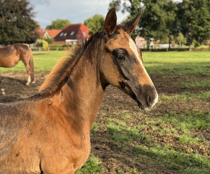 For sale is a promising Oldenburg colt, born on June 21, 2025. This colt is characterized by his excellent and elastic movements and his balanced temperament. He is growing up in a herd environment with plenty of turnout and other mares with foals, has mastered the basics of foal training, is regularly presented to the farrier, and is dewormed. The mother, Delphine vom Schafhof, was herself placed in dressage at the A level before going into breeding. The mother of the mare Avourneen was placed up to M** level. On the dam's side, Grand Prix champion De Niro and Argentan son Archipel shine. From the dam line: The sires Abdullah by Donauwind, Glock’s Tango by Jazz/Grand Prix winner with Hans Peter Minderhoud, NED, Jheronimus by Dream Boy/Kirsten Brouwer, NED, as well as the Grand Prix successful Lago by Dream Boy/Liesbeth Geven, NED, and Bonzanjo by Jazz/Diederik van Silfhout, NED. If you are interested or need further information, please feel free to contact me. Visit us and see for yourself this extraordinary foal.