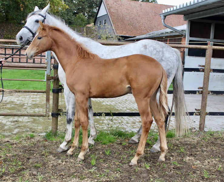 Wunderschönes Hengstfohlen des Viva Romance. Das Fohlen ist sehr korrekt und total artig im Umgang. Er ist täglich in der Hand und hat einen super Charakter. Ein echter Kumpel für die kommenden Aufgaben im Dressurviereck. Er bewegt sich immer schön gleichmäßig im Takt und zeigt einen sehr guten Schritt. Der Stamm der Badda geht zurück auf Glocks Toto Junior der hier keiner Erläuterung mehr bedarf. Auch stammt Westminster der Vater der Jahrhundertstute Weihaiwej aus dem Mutterstamm, oder auch der Landbeschäler Decurio aus Moritzburg. Der Mutterstamm liefert seit Generationen Auktionsreitpferde und erfolgreiche Zuchtstuten. Aktuelles Video vorhanden Anschauen nach Absprache möglich
