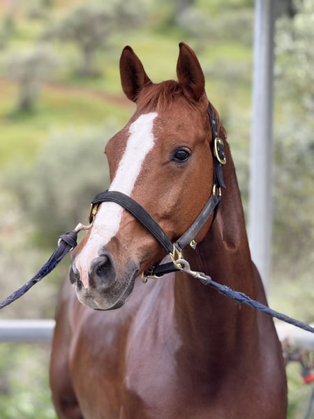 Winzton de CT, caballo de la raza Oldenburg, gelding nacido en 2015, aproximadamente 1,67 m. Hijo de Governor y una yegua SWB por Bourbon. Se vende directamente por el criador. Winzton es un caballo absolutamente impresionante, con mucho carisma. Siempre tiene las orejas hacia adelante y le encanta recibir caricias y besos en el establo. Tiene movimientos realmente buenos, con mucha potencia en sus patas traseras, siempre con una postura uphill y un buen ritmo. Actualmente compite en nivel 3 de doma clásica y ha comenzado a aprender cambios de pie. Ubicado en España, a 15 minutos del aeropuerto de Alicante. Piro negativo.