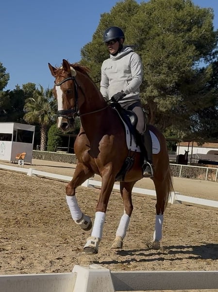 Winzton de CT, OLD gelding born 2015 and ap. 167 cm. By Governor and a SWB mare by Bourbon. For sale directly from the breeder. Winzton is an absolutely stunning horse with a lot of charisma. He always has his ears forward and loves cuddles and kisses in the stables. He has really good movements with a lot of power in his hind legs, always uphill and with a good rhythm. Currently at level 3 dressage + started flying changes. Located in Malaga, Spain. Piro negative.