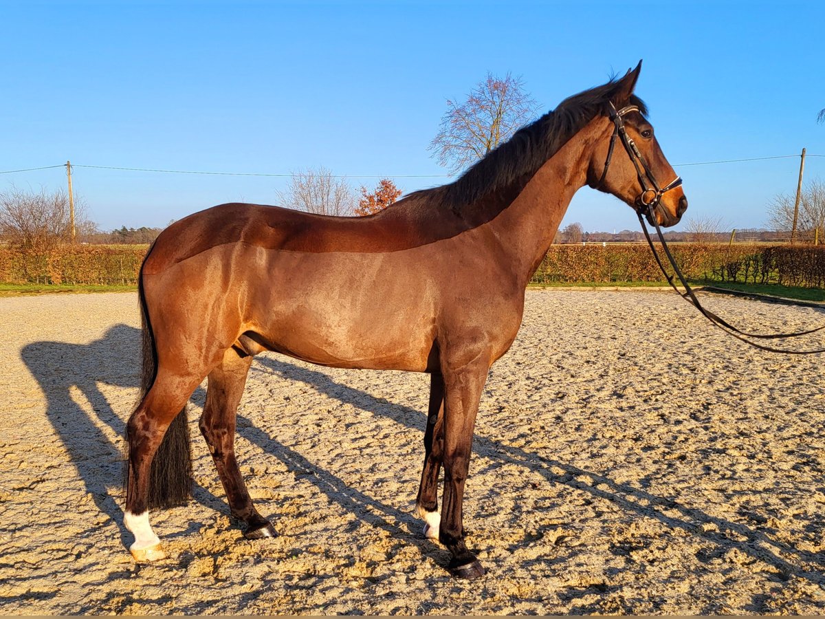 Freddy is a dark bay gelding born in 2015, sired by Don Frederic (a Siegerhit son), with Donnerhall as his grandsire. He stands approximately 17.6 hands high. He is a very friendly horse with three outstanding basic gaits that provide an exceptionally smooth riding experience. He enjoys being pampered and cuddled, is very good with other horses, and delights in his daily turnout. Due to his size, he developed relatively late but has been given the necessary time for his training in his youth. Born and raised here, Freddy has been fully trained by us. We are now seeking a wonderful new 4-star home for him with excellent keeping conditions. We do not see him as an ideal horse for beginners.