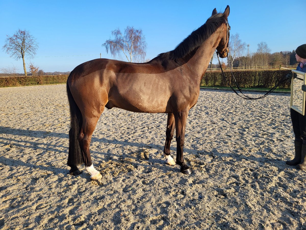 Freddy ist ein 2015 geborener dunkelbrauner Wallach von Don Frederic - Siegerhit - Donnerhall und ist ca 176 cm groß. Er ist ein sehr freundliches Pferd mit drei überaus tollen Grundgangarten was einem ein wirklich schönes Reitgefühl vermittelt. Er lässt sich gern betüddeln und beschmusen, ist auch sehr verträglich mit anderen Pferden und genießt den täglichen Weidegang. Aufgrund seiner Größe ist er relativ spät entwickelt und hat dafür in jungen Jahren die nötige Zeit in der Ausbildung bekommen. Er ist bei uns geboren und ausgebildet, nun suchen wir ein schönes neues 4* zu Hause für ihn mit tollen Haltungsbedingungen. Wir sehen ihn nicht als Anfängerpferd.