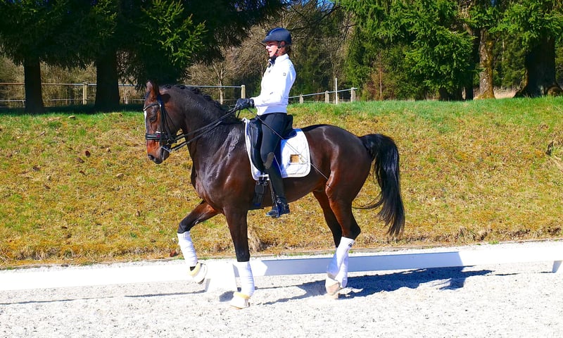 Friendly and consistently willing sports horse, successful up to Intermediaire II, particularly well-suited for the "Small Tour" up to Intermediaire I. Equally suitable for a young rider or an ambitious junior. A pleasure to handle. A current veterinary certificate is available. Due to personal private circumstances, he is offered at a very favorable price. For more information or to arrange a trial ride, please feel free to contact us anytime by phone at 0172-5330585.