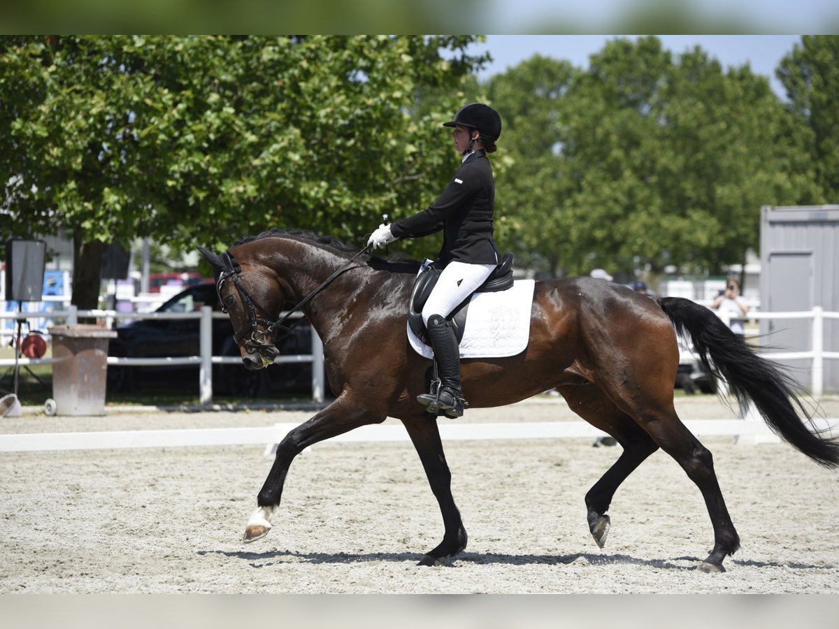 Prachtige 11-jarige dressuurhengst op zoek naar een nieuw thuis. Met een imposante hoogte van 1,72 m is hij een echte blikvanger. Naast zijn vriendelijke karakter beschikt hij over uitstekende rijvaardigheden en zeer expressieve gangen. Tot nu toe is hij voornamelijk privé dressuurmatig getraind, beheerst alle oefeningen van de dressuurklasse M en heeft zelfs al halve passen geleerd. Op één concours dat hij heeft gereden, wist hij meteen een plaats te bemachtigen. Hij is ook een geweldige vrijetijdspartner en kan zowel solo als in een groep veilig en goed in het terrein worden gereden. Hij staat momenteel in Wenen, in de Prater, en kan op elk moment bezichtigd worden.
