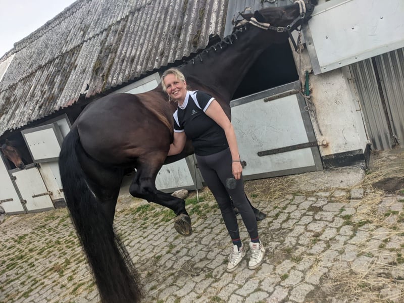 **Sales Advertisement: Dreamy Oldenburg Gelding, For Sale Due to Personal Health Reasons** We are looking for a new home for our beautiful Oldenburg gelding. **Details:** - **Breed:** Oldenburg - **Gender:** Gelding - **Year of Birth:** 2012 - **Color:** Black-brown - **Height:** 180 cm - **Discipline:** Dressage, Leisure This impressive gelding not only impresses with his size, sensitivity, charm, and elegant appearance, but also with his excellent temperament and versatile personality. He values affectionate attention, movement, and mental engagement. Due to a formative accident in his younger years, he is suitable for an experienced rider who wishes to further develop him. Details about his past can be discussed in a personal conversation. If you are interested or need further information, please feel free to contact us. We look forward to your inquiry!