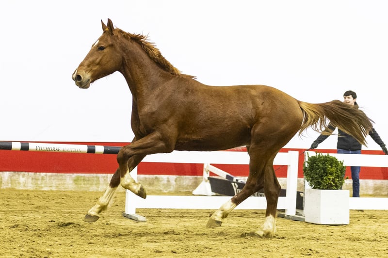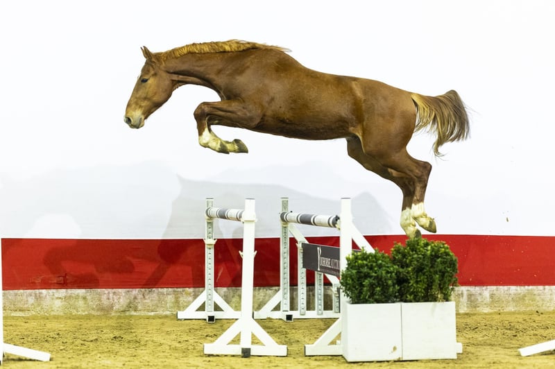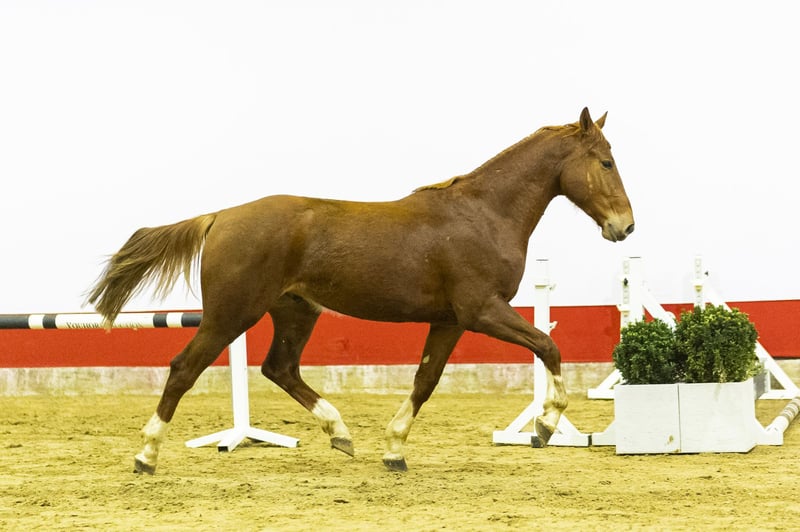 Very appealing jumping model with a strong and correctly built body. He shows plenty of push-off, carries himself easily and moves in a light-footed way. A young horse with good balance, overview and a willing attitude towards his work.