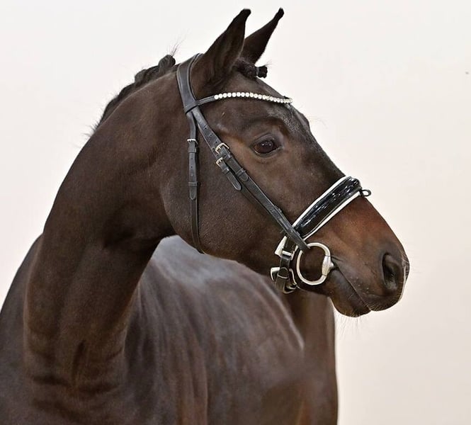 Typstarker Jüngling mit einem sehr schönen Seitenbild versehen. Braucht noch Zeit zum Reifen. Die Mutter ist Schwester von Kut ‚N‘ Move/siegreich in der Junge Reiter-Tour mit Catarina Costa, POR. Kopyright ist Schwester von vier Hengsten, darunter Intermediaire I-Sieger Karolinger I.
